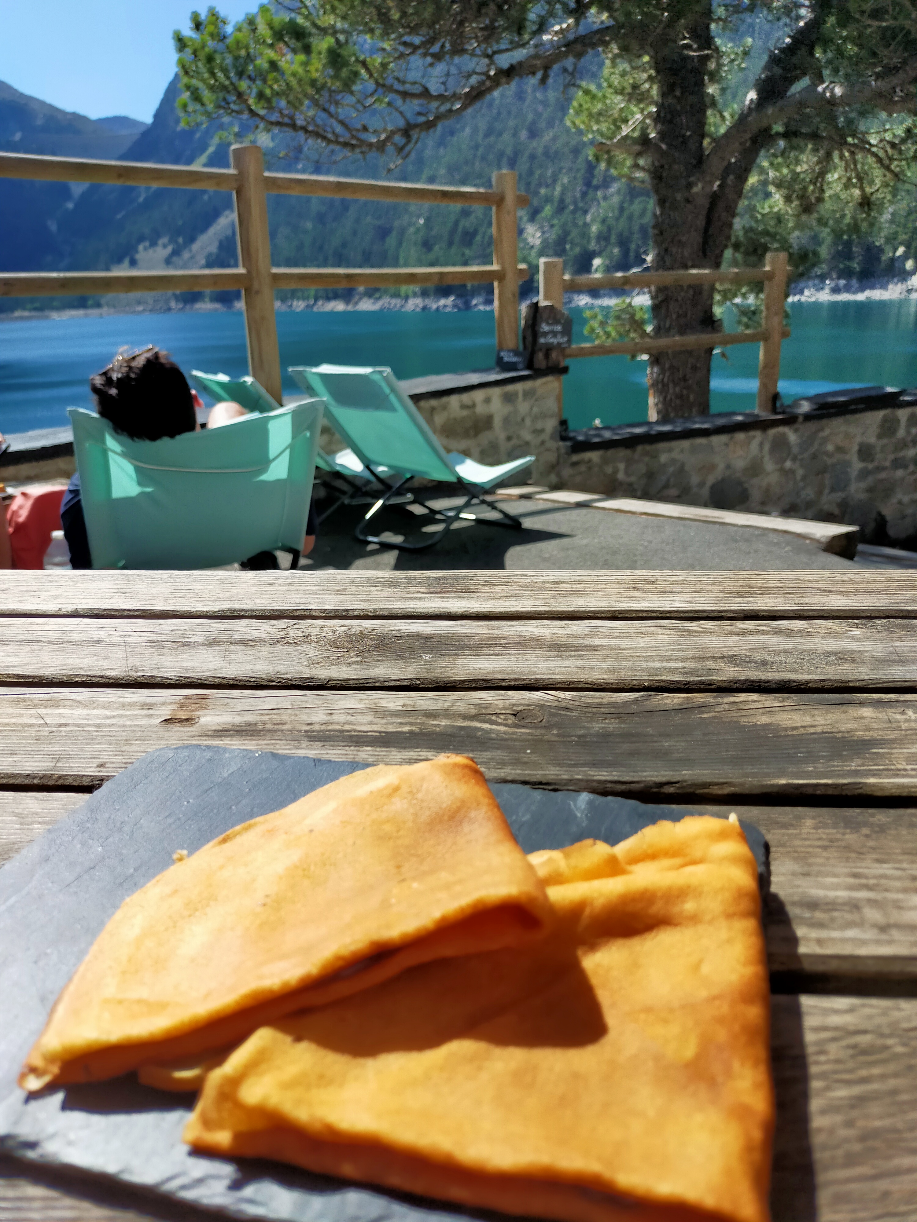C'est juste à l'entrée de la Réserve Naturelle du Néouvielle, que nous avons commandé une crêpe, un café et deux sandwichs à emporter. Le pain m'a vraiment beaucoup déçu pour être français, il était dur et sec. Les prix sont élevés, mais il faut garder à l'esprit que c'est en France, et dans un endroit paradisiaque. Mais le service et le contexte, le paysage font tout oublier. Cela vaut la peine de s'arrêter. Attention très amicale et polie