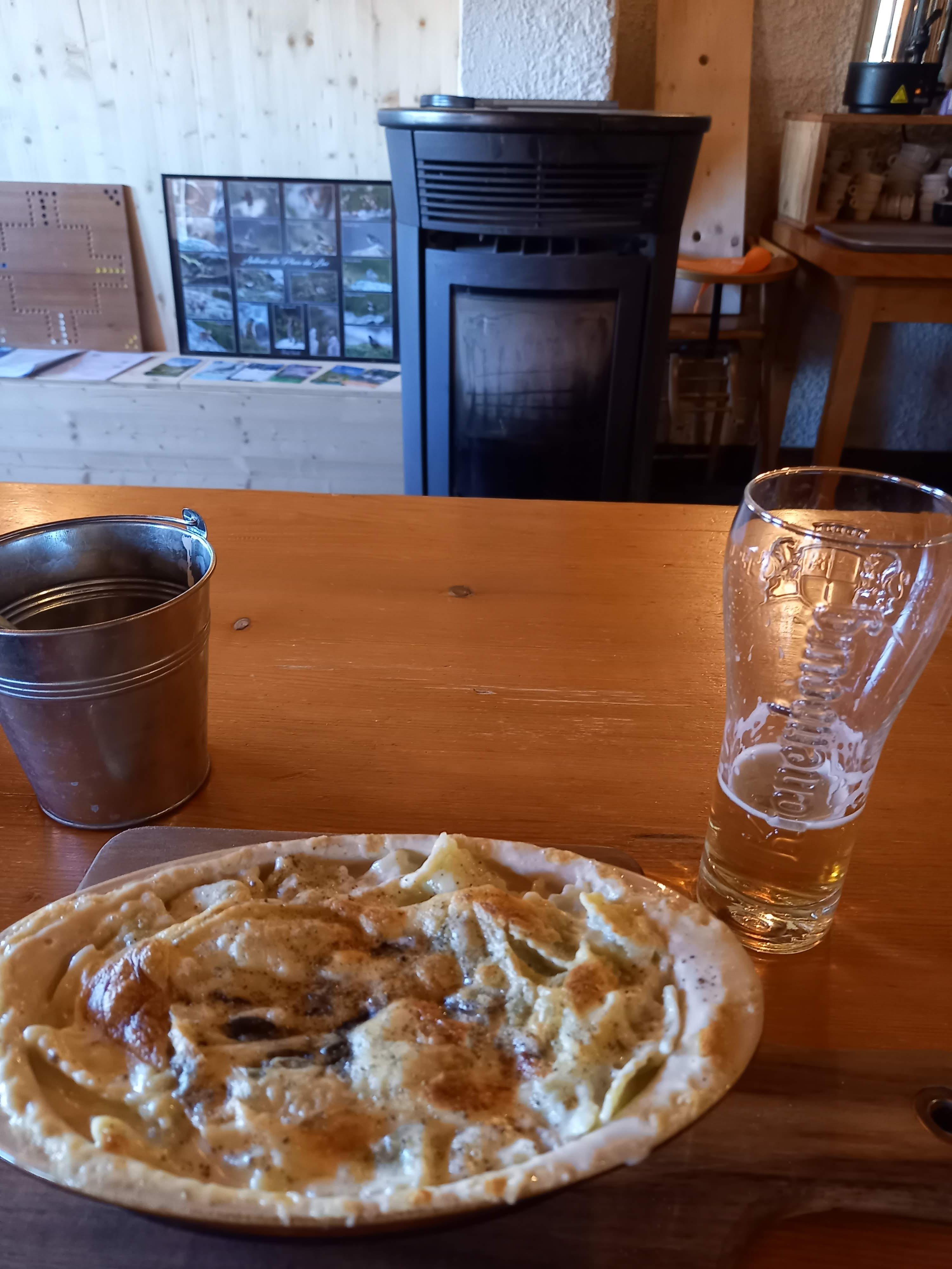 Après une torride ascension en vélo (canicule août 2023) un petit repas réconfortant, très bon accueil par une équipe dynamique et sympathique, bravo à eux, il y avait de l'affluence ! Tout près d'un magnifique lac dans un paysage qu'il est tout autant